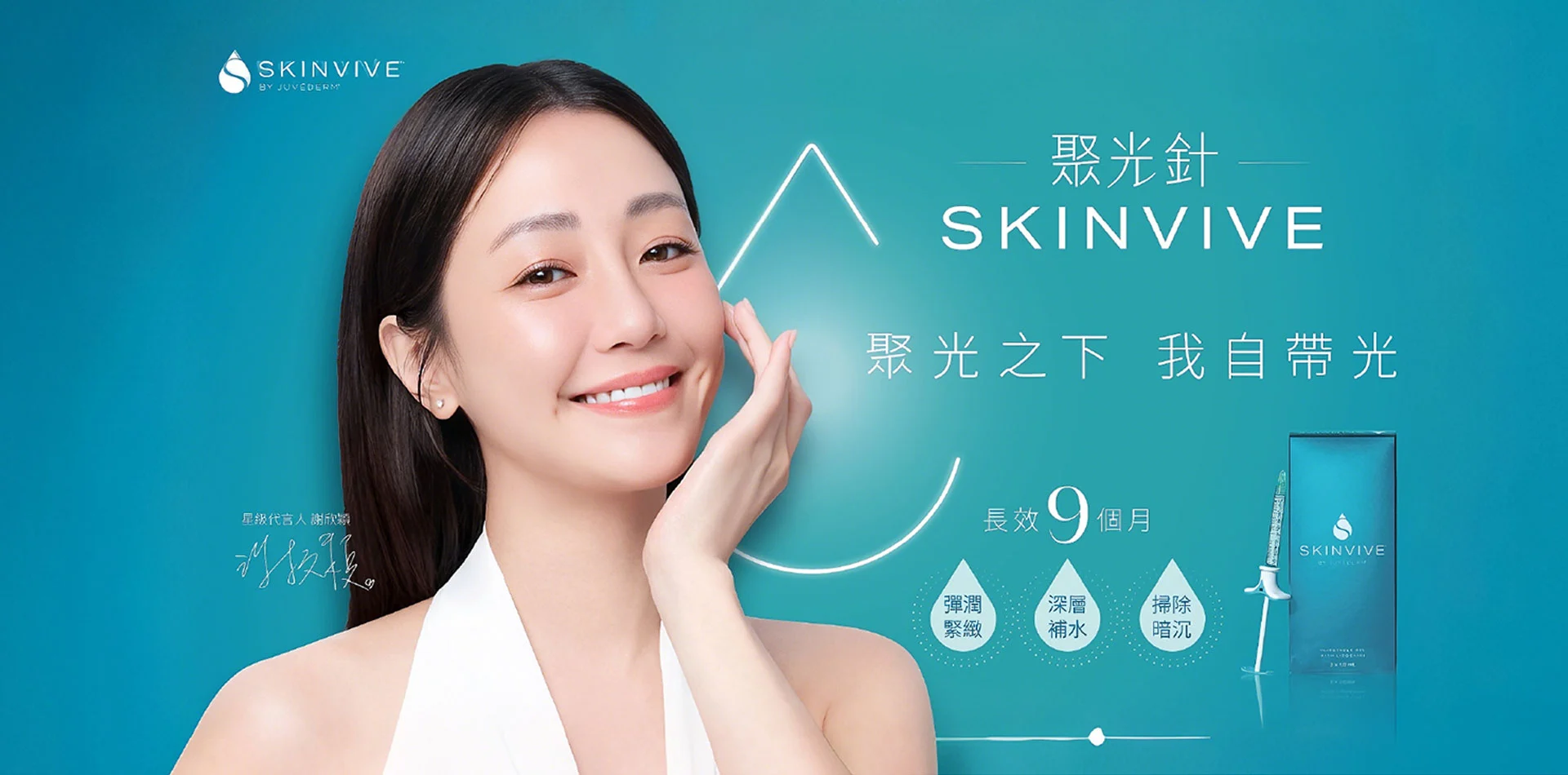Introduce 手術介紹 麻醉方式 敷麻 手術時間 視施打範圍評估 復原時間 幾乎沒有 維持期 6至9個月 SKINVIVE 聚光針 來自美國國際大廠的喬雅登Juvéderm推出的全新 改善膚質的玻尿酸注射療程(Skin Booster),獲得台灣衛服部、美國FDA、歐盟CE的三重認證,主要作用於肌膚真皮層, 就像讓肌膚喝飽滿滿水分,提升肌膚保水度與平滑度,經臨床證實效果可長達九個月。 不同於傳統玻尿酸用於輪廓塑形、填充,SKINVIVE®聚光針的設計重點在於改善肌膚質感,不追求體積改變,讓肌膚呈現更加細緻、柔嫩與透亮的完美狀態。 Applicable For 適合對象 極度乾燥/沙漠肌 暗沉蠟黃/初老肌 追求自然水光感 常規保養瓶頸